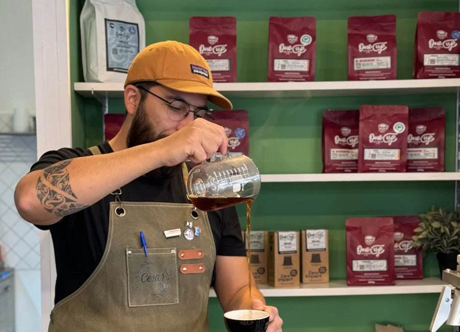 César Villablanca es la persona que da significado a la palabra barista y engrandece la profesión. Se preparó con expertos a nivel mundial, es una persona detallista y le apasiona buscar el espresso perfecto. Como él mismo dice “quiero que la pastilla de café se derrita en la taza”.