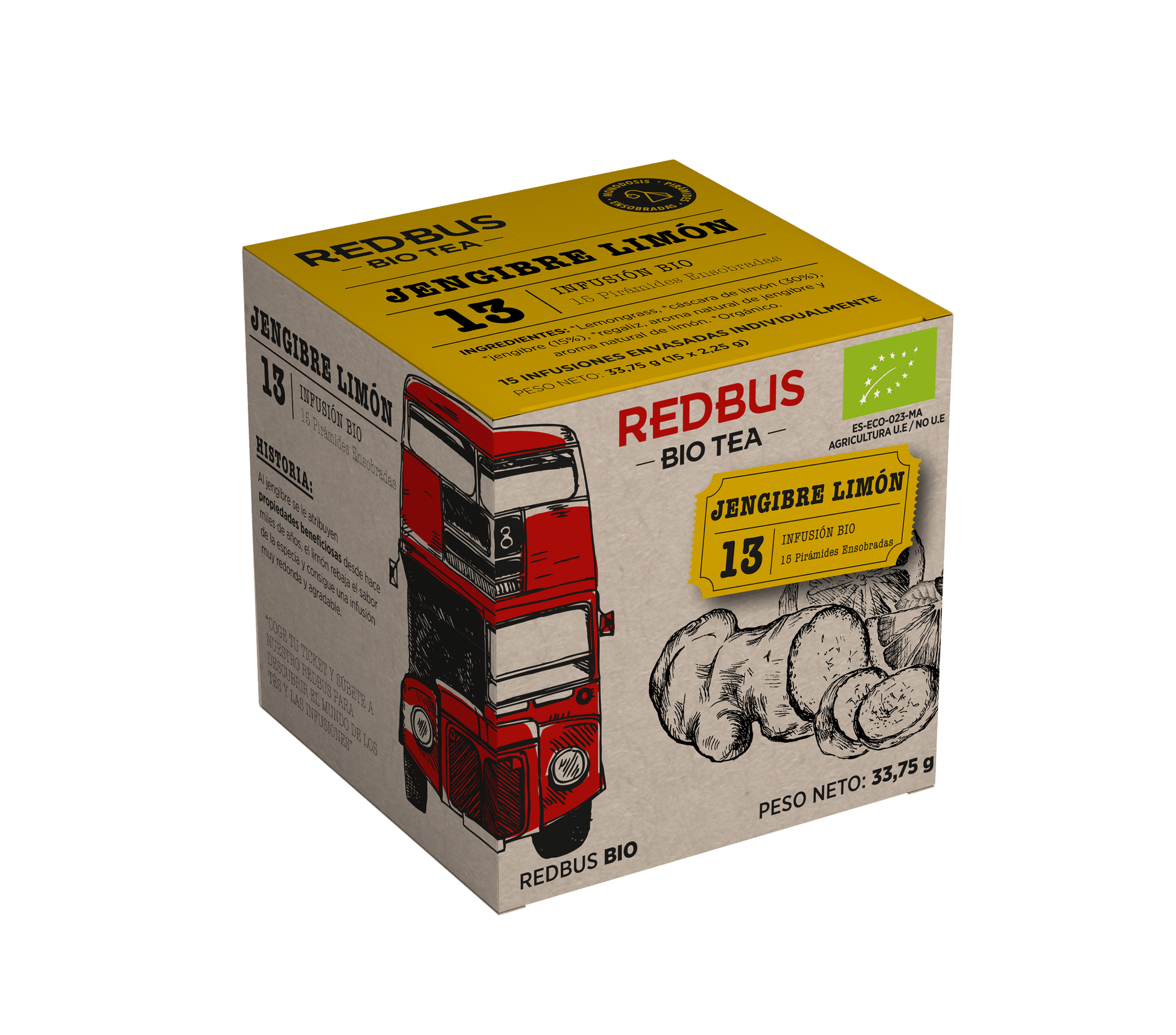 Infusión estrella para los amantes del jengibre. Su sabor es muy reconfortante e incentiva a un consumo diario. Si se desea potenciar el toque picante aconsejamos alargar el tiempo de infusión. Ideal para disfrutarla en caliente y como Ice Tea con un toque de miel o sirope de Agave. Una mezcla cuyos ingredientes ayudan al organismo a eliminar toxinas con un efecto muy digestivo y antiséptico. El polen de abeja aporta un plus de energía natural, en una mezcla sin teína.